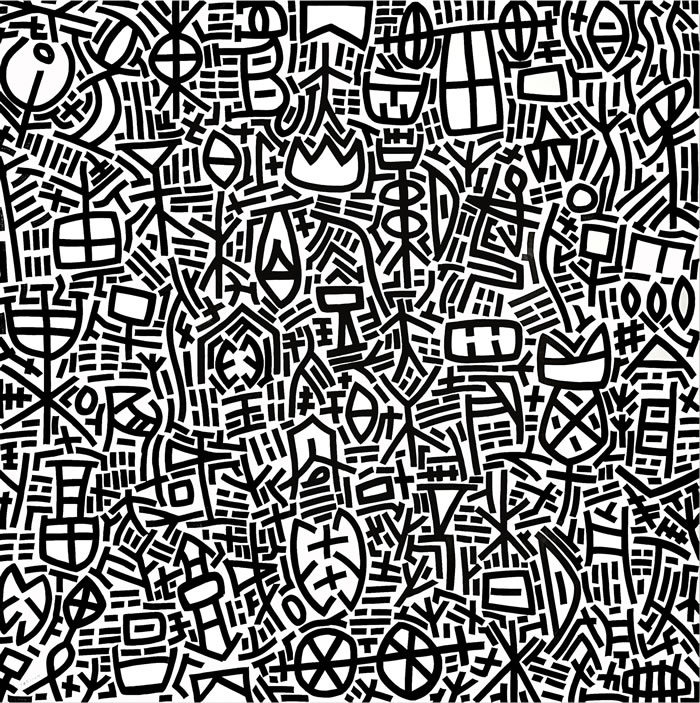 《甲骨文·符号》系列作品,是唐岐山基于对中国传统文化传承的强烈使命感,所展开的一场关于中国古老文化传承与当代艺术深度融合的探索之旅。在历史长河中沉睡已久的古老甲骨文以及八卦中的阴爻、阳爻等文化符号,被唐岐山赋予了鲜活灵动的生命力。他冥思苦索如何使历经岁月尘封的甲骨文转化为充满朝气活力的新符号形式。通过巧妙的变形手法,甲骨文字被重塑为画作中的核心视觉标识,再融入八卦中的阴爻、阳爻元素,进一步强化了作品的文化底蕴与内涵。当下古老文字与图案虽然是文明传承的瑰宝,却面临着大众认知疏离的困境。唐岐山独具匠心,运用当代艺术的表现形式为古老文化内核裹上时尚的“外衣”,巧妙地将其转化为更契合当代人审美需求的视觉呈现方式,为传统文化在新时代的传承与发展开辟了新路径,令传统文化瑰宝再度焕发出耀眼的光彩。