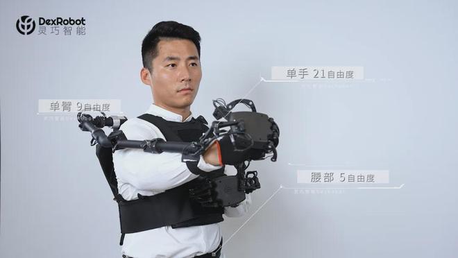 针对具身智能操作中数据稀疏性这一行业共性难题,灵巧智能则打造了全链路技术平台。其遥操作套件及具身智能训练平台打通了视-臂-手-触-运动的技术路径,结合裸眼3D显示或VR视觉眼镜,实现了远程环境下的精准操作与数据采集。DexCap数据采集系统采用轻量化(2kg)高精度异构外骨骼架构,通过毫米级运动捕捉(双臂9DOF+双手21DOF+腰部5DOF)、千赫级响应速度及五级触觉反馈,为灵巧操作算法训练提供了高保真数据支撑,重新定义了人体运动数据采集的精度与效率。